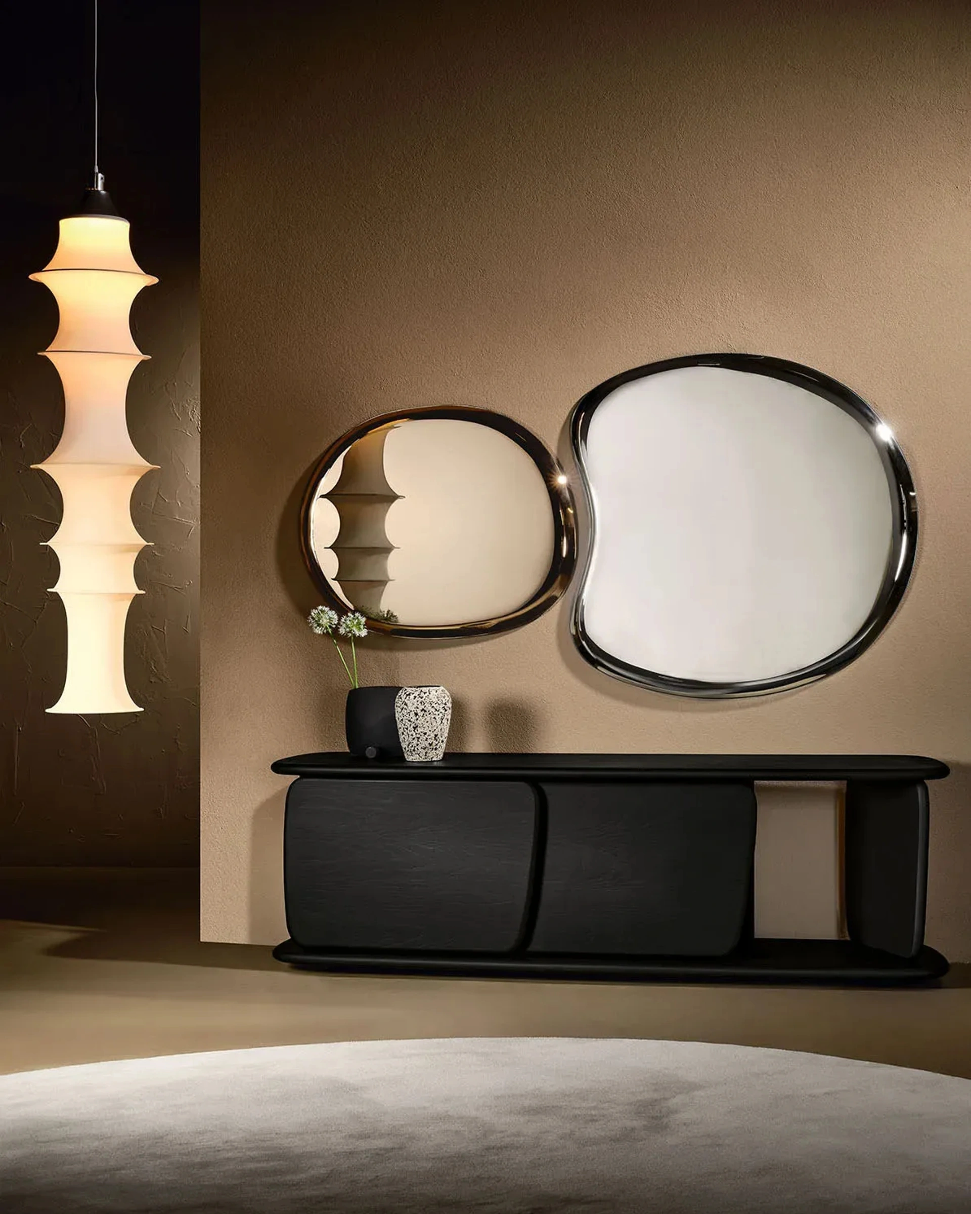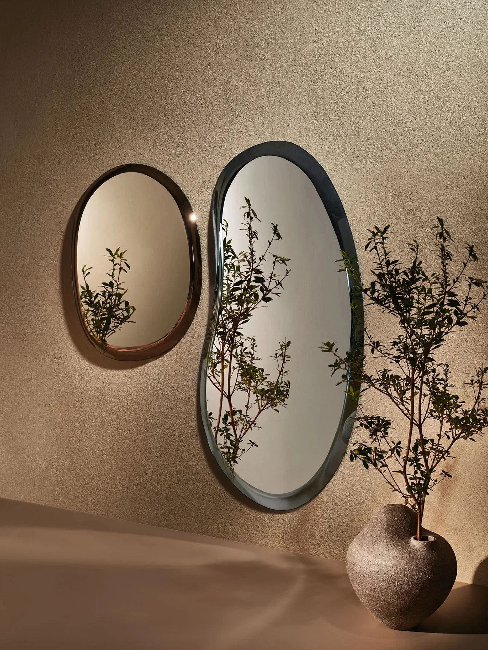 Scopri l'esclusivo specchio Pangea di Nature Design, disponibile presso il nostro showroom Arredamenti Serafino S.r.l. a Striano. Questo capolavoro, firmato da Gino Carollo, incanta con il suo design avvolgente che riflette con eleganza l'ambiente circostante, portando un tocco di natura e sofisticazione in ogni ambiente. La collezione Pangea offre diverse forme e dimensioni, perfette per creare composizioni uniche e personalizzate, ideali per valorizzare con stile ogni spazio della tua casa. Visita il nostro negozio per toccare con mano la qualità dei materiali come specchio, vetro cotto bronzo, fumé ed extrachiaro. La tradizione artigianale incontra le soluzioni più innovative, un connubio che potrai esplorare di persona solo da Arredamenti Serafino S.r.l. a Striano.