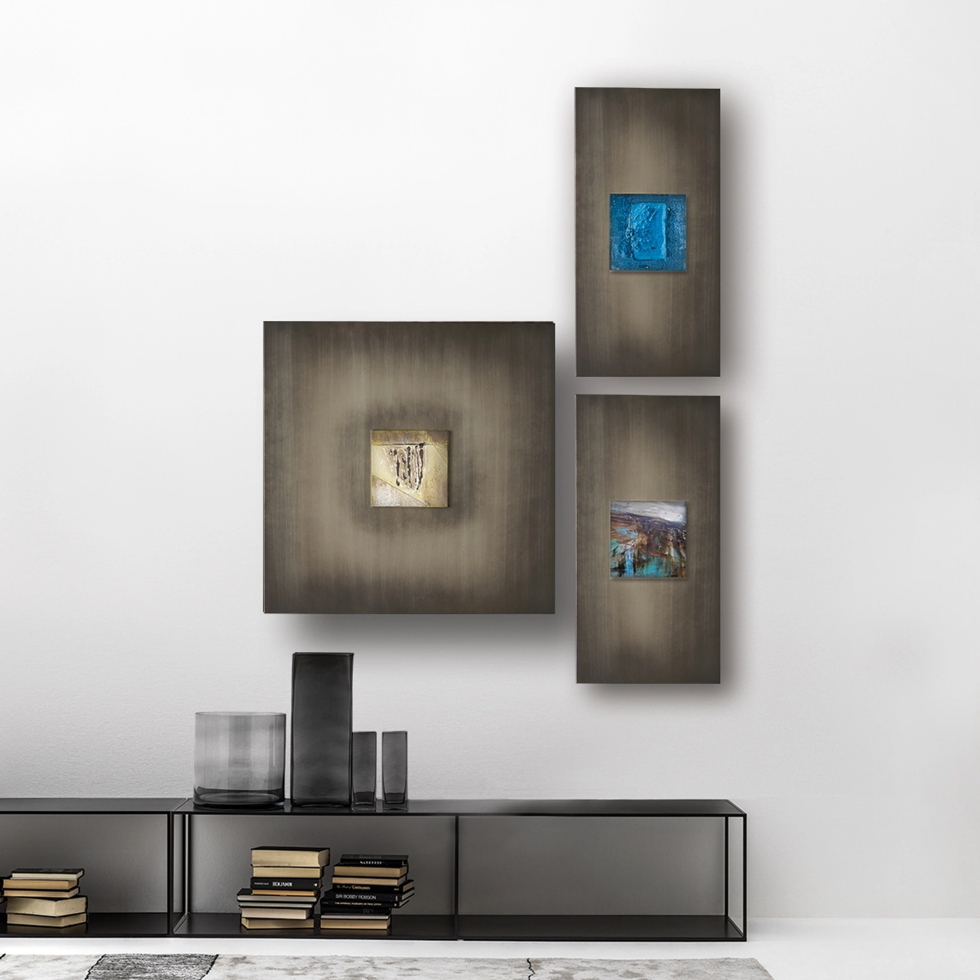 Complementi e quadri completano l'arredo di casa, riempiendo lo spazio in maniera utile e rendendolo assai funzionale e di grande valore estetico. In negozio potrai visionare in prima persona l'eccellenza dei modelli di quadri design in metallo dell'azienda, proprio come questa soluzione in foto. Quadro-Museum di Adriani e Rossi in metallo: darà personalità e fascino a un locale ammobiliato con mobili e complementi dai richiami design. Assai versatili e plurifunzionali, i Complementi design in metallo rispondono a funzioni diverse: ultimano le doti di funzionalità e il valore estetico del locale. Le composizioni arredative di grande valore estetico del marchio Adriani e Rossi personalizzano l'ambiente con i loro colori e stile, ricreando peculiari atmosfere arredative.