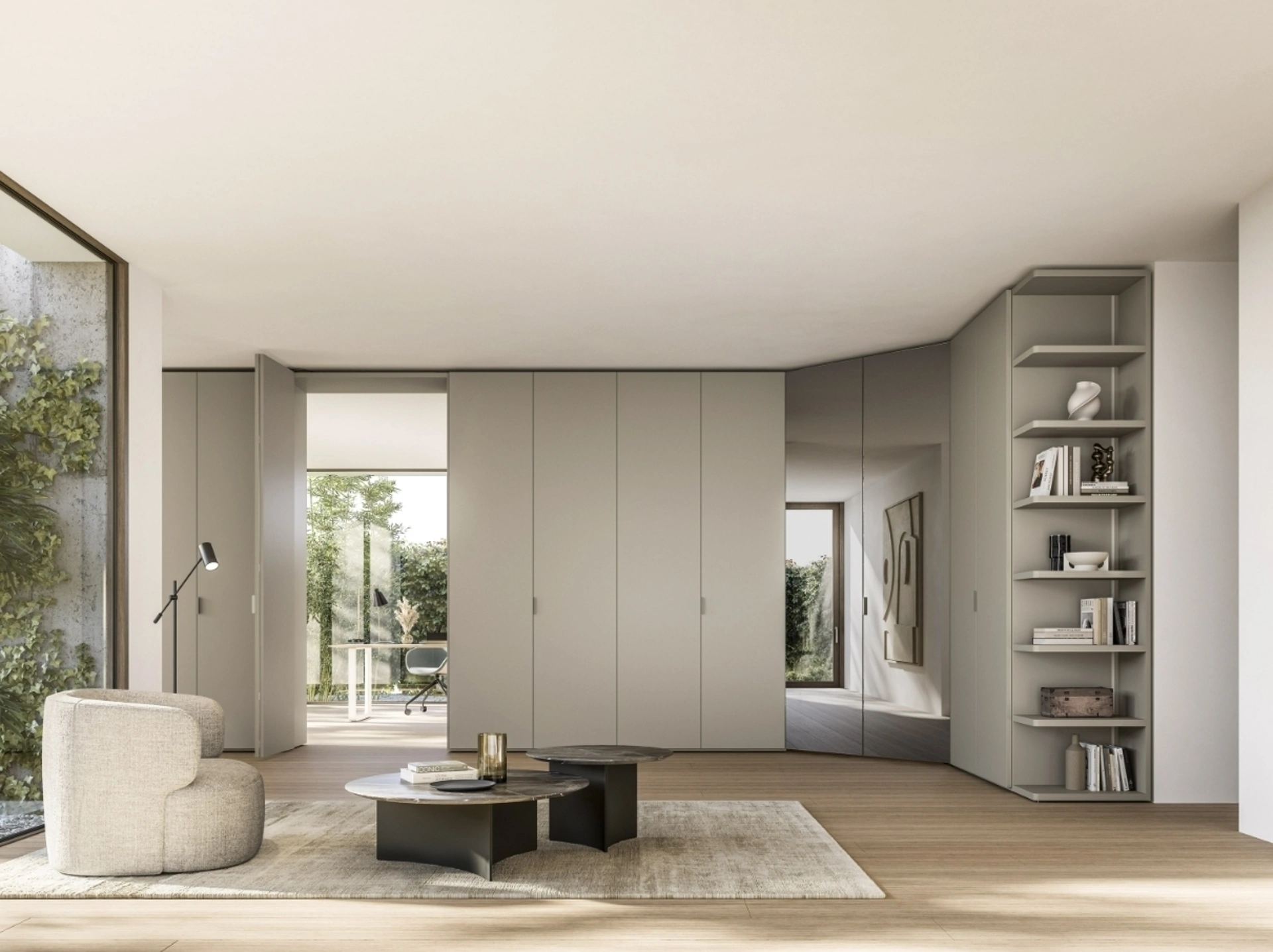 Contattaci e scopri di più sulla nostra serie di Arredamento Casa: potrai ultimare la camera da letto contando su una ricca varietà di mobili contenitori moderni, come l'armadio in laccato opaco nella fotografia. Gli Armadi ad angolo con ante battenti sono componenti imprescindibili nella zona notte, per renderla arredata con gusto, pratica e completa di tutto. Per ammobiliare alla perfezione una stanza bella e di grande qualità, prediligi le più belle soluzioni dei migliori produttori, letti, armadi e comò di elevata qualità.