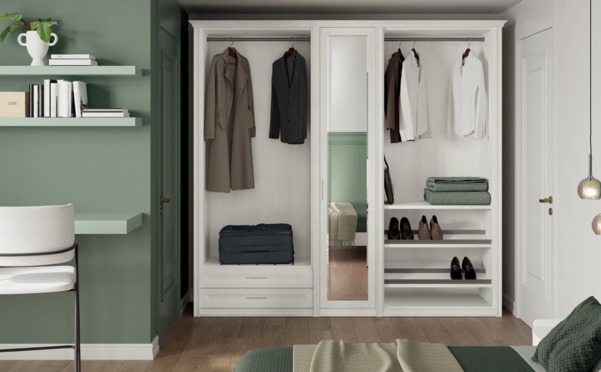 Per allestire alla perfezione una stanza bella e funzionale, prediligi le più belle soluzioni delle migliori marche, letti, armadi e comodini di elevata qualità. Gli Armadi a muro con ante battenti sono componenti irrinunciabili nella camera da letto, per renderla ammobiliata al meglio, pratica e completa di tutto. Contattaci e ottieni informazioni sulla nostra linea di Arredamento Casa: potrai completare la zona del riposo usufruendo di una ricca gamma di mobili contenitori classici, come l'armadio in melaminico in foto.