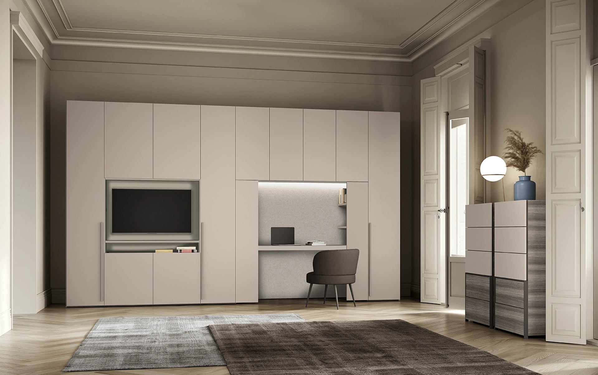 Gli Armadi a ponte con ante battenti sono elementi essenziali nella zona notte, per renderla ben arredata, pratica e completa di tutto. Contattaci e ottieni informazioni sulla nostra collezione di Arredamento Casa: potrai completare la zona notte potendo usufruire di una ampia disponibilità di contenitori moderni, come l'armadio in melaminico in foto. Armadio Concreta W07 di Colombini Casa: compila il form per ricevere info di ogni sorta e consigli per progettare la camera che hai sempre sognato.