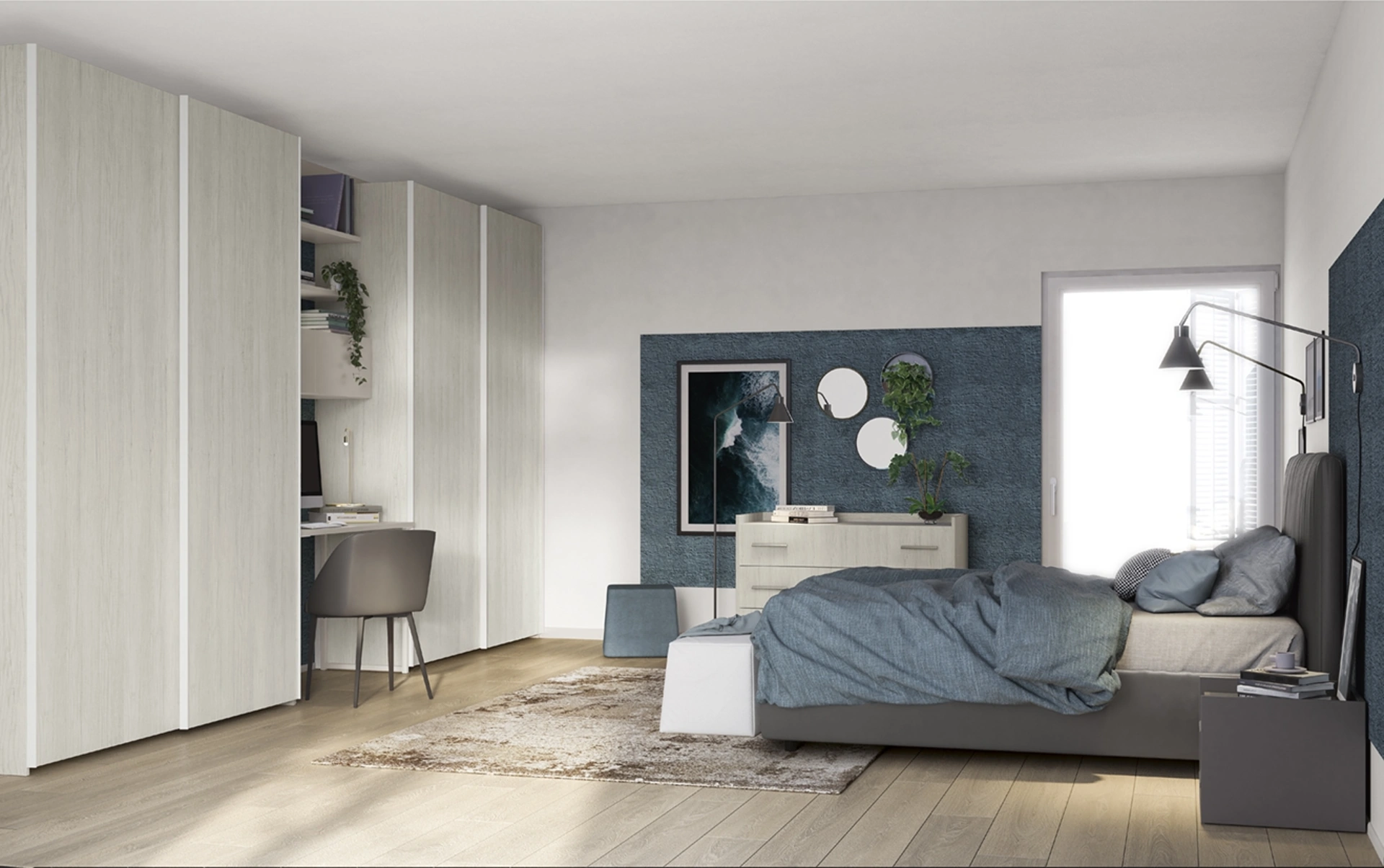 Contattaci e scopri di più sulla nostra linea di Arredamento Casa: potrai ultimare la zona notte potendo usufruire di una diversificata varietà di contenitori moderni, come l'armadio in melaminico nell'immagine. Gli Armadi componibili con ante scorrevoli sono elementi essenziali nella camera da letto, per renderla ben arredata, pratica e completa di tutto. Per progettare perfettamente una stanza bella e funzionale, scegli le più belle soluzioni dei migliori produttori, letti, armadi e comodini di grande design.