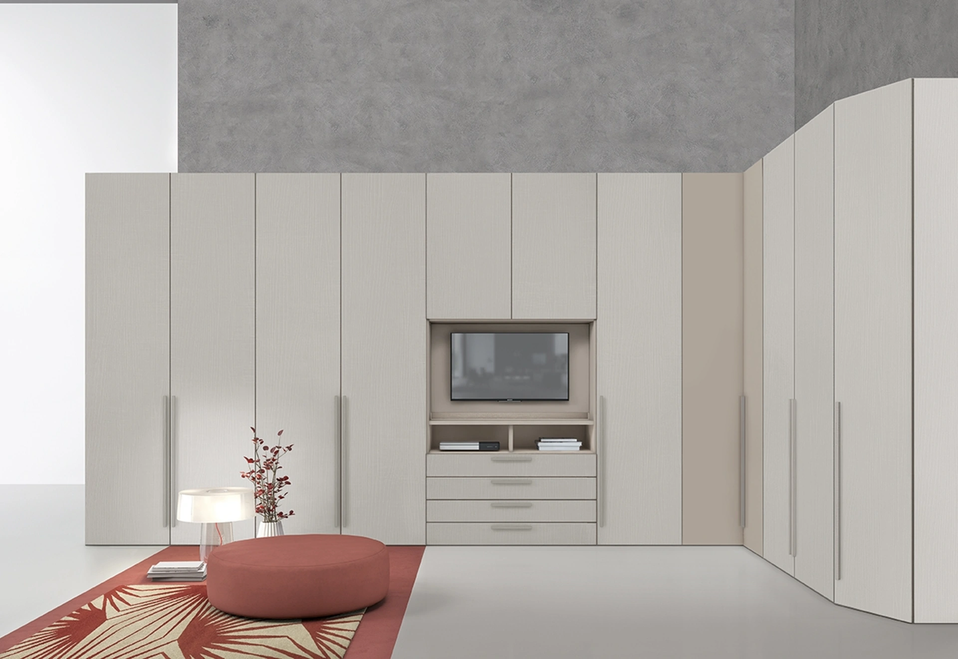 Armadio One U24 di Colombini Casa: compila il form per ricevere informazioni di ogni sorta e consigli per progettare la camera che hai sempre voluto. Gli Armadi ad angolo con ante battenti sono elementi immancabili nella zona notte, per renderla ammobiliata al meglio, pratica e completa di tutto. Contattaci e scopri di più sulla nostra collezione di Arredamento Casa: sarai in grado di completare la zona del riposo avendo a disposizione una diversificata varietà di mobili contenitori moderni, come l'armadio in melaminico nella fotografia.
