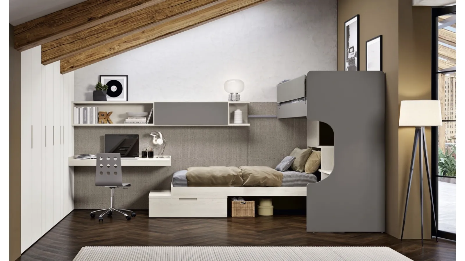 Questa proposta con finitura in melaminico, tra quelle con letti a castello per ragazzi di Ferrimobili, soddisfa le esigenze degli adulti e i gusti dei bambini. Con la Cameretta 112 di Ferrimobili renderai la stanza dei tuoi figli un luogo davvero funzionale e sicuro, che li seguirà mentre diventano grandi. Il rinomato brand propone svariate soluzioni moderne, in questo modo la cameretta risulterà una stanza dove i piccoli saranno contenti di crescere e riposare. Per progettare al meglio le Camerette, Ferrimobili propone progetti articolati e polifunzionali: sono svariate le attività che i tuoi figli svolgono lì. Visitare il nostro negozio vuole dire vedere dal vivo tutte le più esclusive soluzioni per ragazzi con letti a castello in melaminico che proponiamo nel nostro punto vendita.