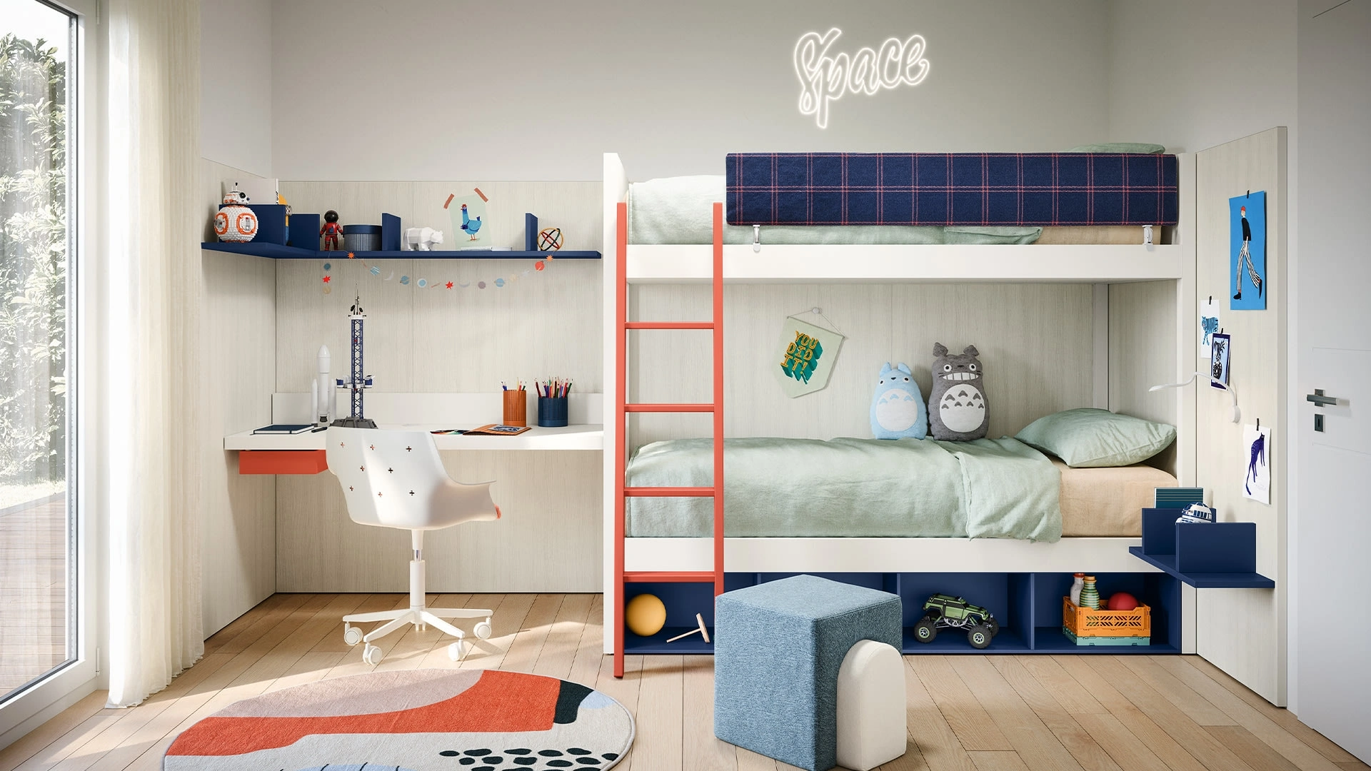 Nell'arredamento della stanza dei piccoli affidati a noi: nel nostro punto vendita presentiamo tutte le più esclusive composizioni moderne per la loro camera. Se cerchi spunti creativi per organizzare ottimamente la stanza dei tuoi figli, ti presentiamo la Cameretta con letti a castello Camelot di Nidi con finitura in melaminico. Nidi mette a disposizione un ricco catalogo di accessori da comporre su misura: troverai letto, guardaroba, tavolo da lavoro, sedie e librerie. Porta design e tonalità vivaci nella stanza dedicata ai più giovani con questa soluzione, una delle Camerette con letti a castello per bambini di Nidi.