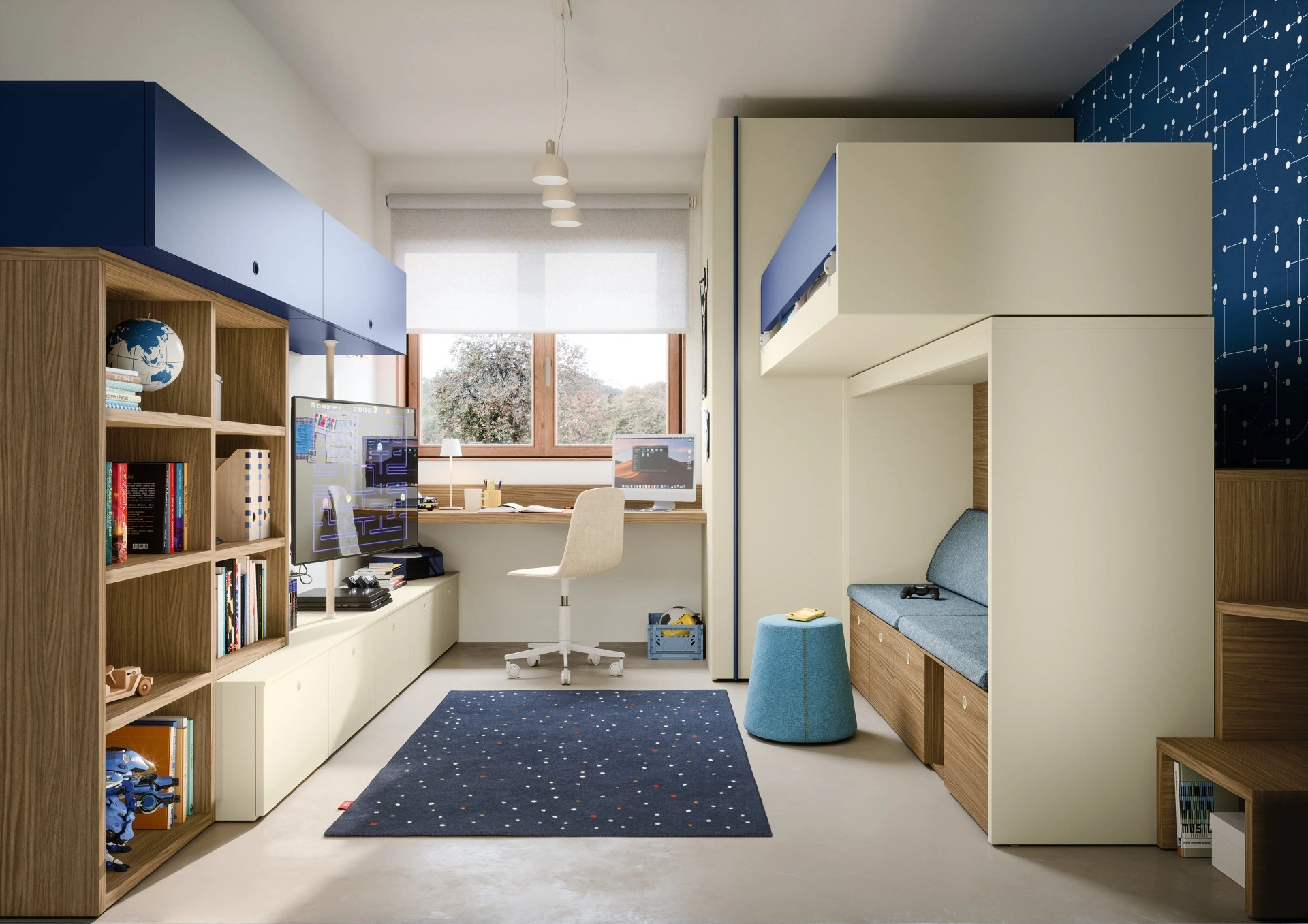 Con la Cameretta con letti a castello Skid di Nidi renderai la stanza dei tuoi figli un luogo davvero confortevole e sicuro, che li seguirà mentre diventano grandi. Il noto brand produce diverse soluzioni moderne, in questo modo la cameretta diventa un locale dove i piccoli potranno crescere e sognare. Per arredare perfettamente le Camerette, Nidi offre soluzioni progettuali e multifunzionali: sono svariate le attività che i tuoi bambini portano a termine lì. Questa soluzione con finitura in melaminico, tra quelle con letti a castello per bambini di Nidi, accontenta le aspettative degli adulti e i gusti dei bambini.