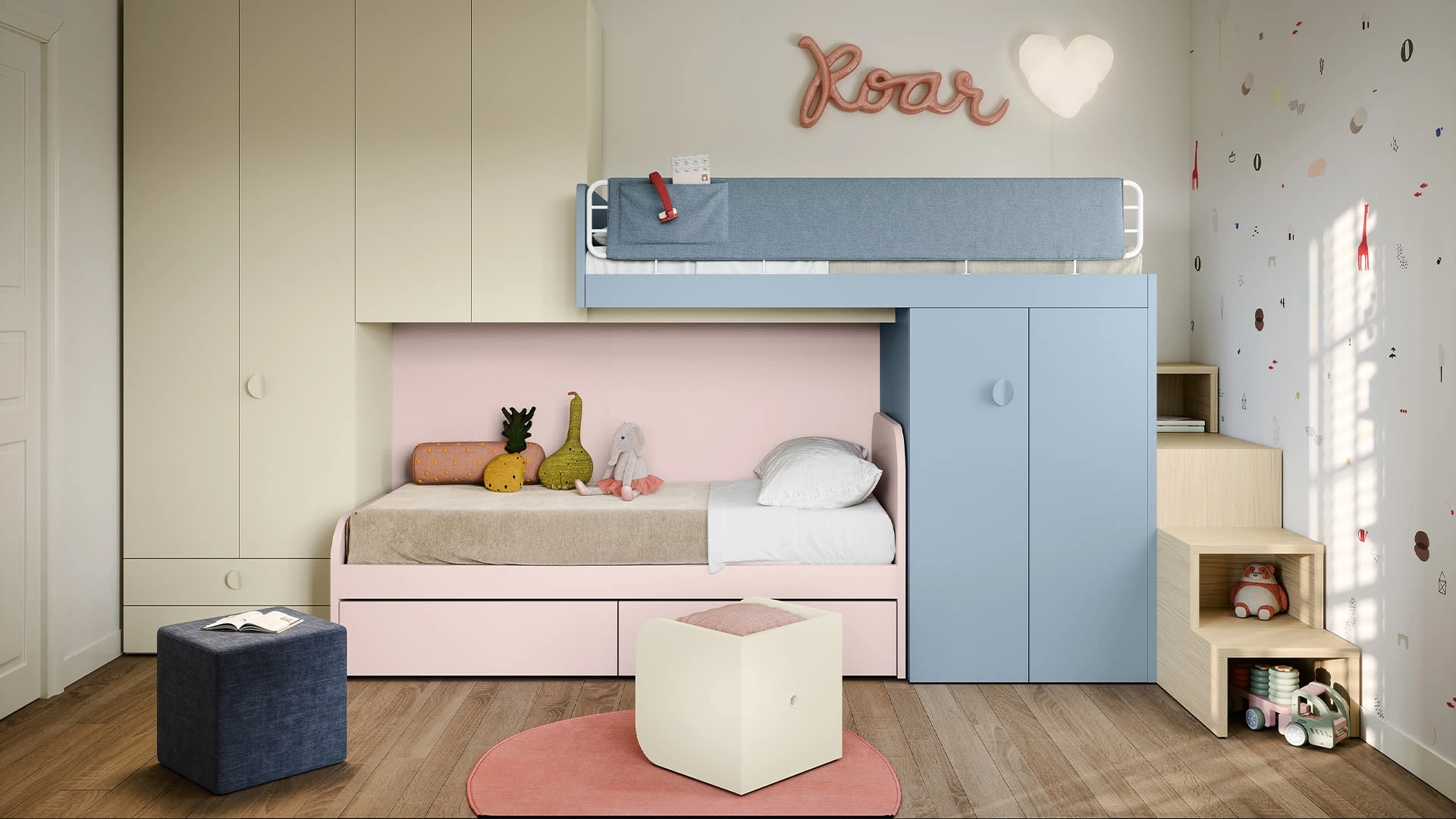 Le Camerette a soppalco per bambini del noto e rinomato brand sono disponibili in svariate versioni, che rispondono sempre alle necessità dei bambini. Gli accessori disponibili per le Camerette a soppalco di Nidi sono sempre personalizzabili, per scongiurare qualsiasi problematicità di spazio e praticità. Materiali di prima scelta e vernici ecologiche caratterizzano le proposte del brand, tra cui troverai anche quelle moderne a soppalco ideali per te. Scopri nel nostro punto vendita la Cameretta con letti a soppalco di Nidi in melaminico: è ideale per creare ottimamente un ambiente confortevole, bello e ben organizzato.