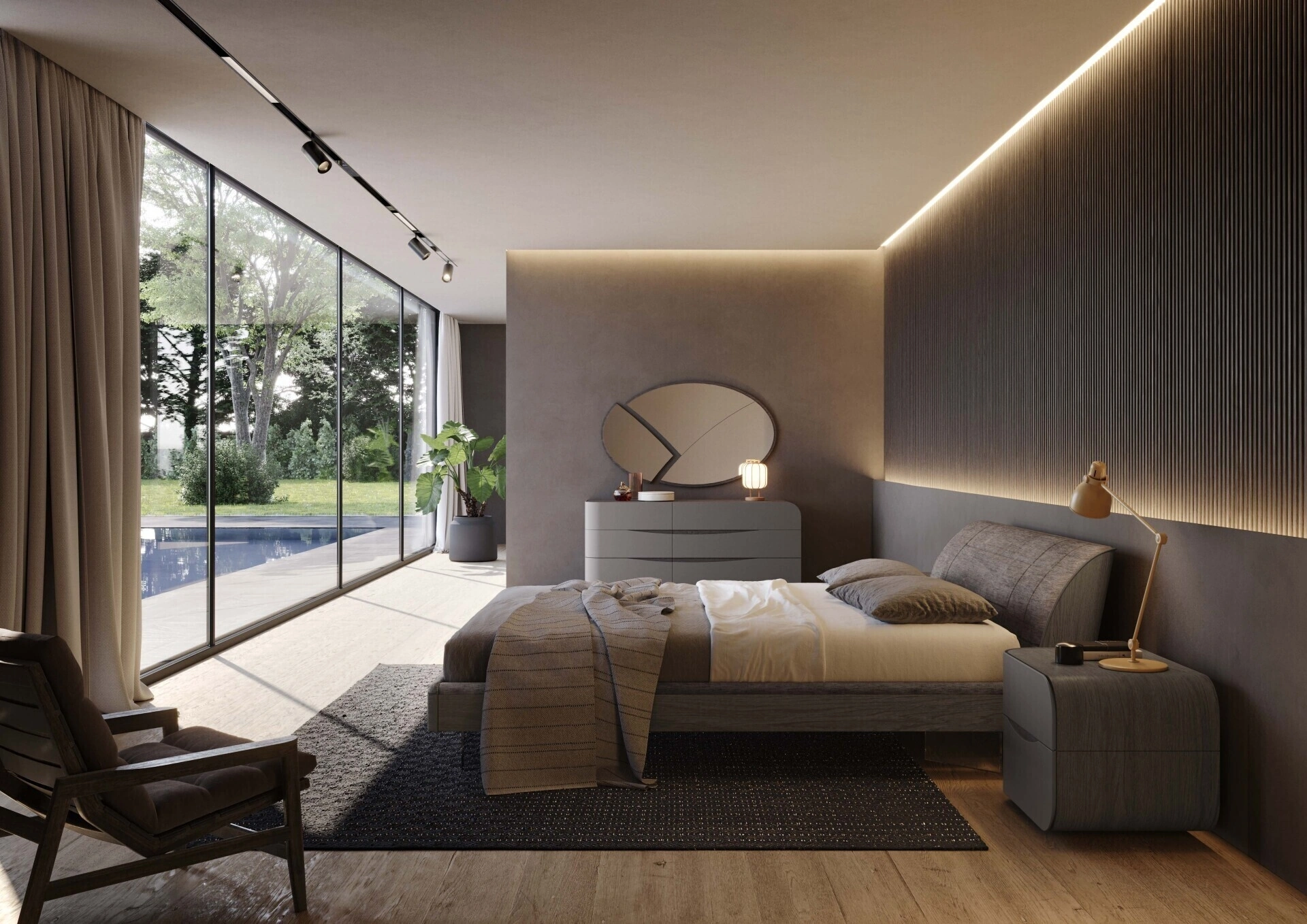 Il sistema notte Eikon Cenere, firmato Voltan, si distingue per la sua estetica contemporanea e la sua ingegneria costruttiva. Componenti principali includono un comò da 150 cm di lunghezza e comodini ottimizzati da 60 cm, progettati per un'integrazione fluida nello spazio. La struttura portante è realizzata in pregiata quercia cenere, mentre i frontali presentano una finitura camoscio, conferendo al mobile una texture sofisticata. La serie è completata da una specchiera coordinata, anch'essa in quercia cenere, per un'armonia stilistica. L'accurata selezione dei materiali e la precisione delle finiture sono elementi distintivi che garantiscono durabilità e un elevato standard estetico, riflettendo un impegno costante verso la qualità intrinseca del prodotto e l'eccellenza delle finiture disponibili.