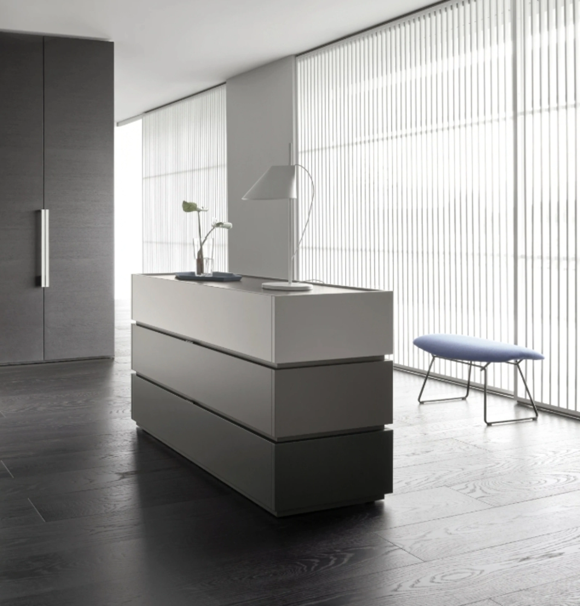 I Comodini, comò e gruppi notte possono essere abbinati al letto e all'armadio o possono essere in voluto contrasto con essi: la scelta si baserà sulle vere disponibilità di spazio e sulla ricerca di un equilibrato effeto finale. Il Comò Filo Componibile di Sangiacomo è una delle più esclusive soluzioni capaci di donare un tocco di stile in aggiunta alla camera, per merito di materie eccellenti. Ottimizza i tuoi spazi assicurandoti molta praticità, spazio contenitivo e un design unico!.