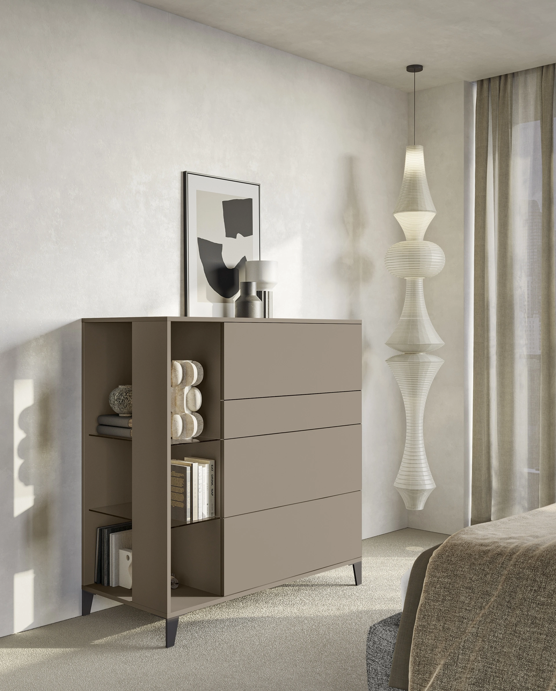 Nel nostro sito potrai trovare una ricca gamma di mobili e complementi per la camera da letto, tra cui anche il modello nell'immagine. Eleganti ripiani per appoggiare, strutture solide, superficie per contenere: nei Comodini moderni che esponiamo questi grandi vantaggi sono assicurati. Scopri di più sulla nostra serie di Comodini, comò e settimini moderni del brand Colombini Casa e ottimizza la tua camera da letto con il gruppo notte che hai sempre voluto. Questo tipo di contenitore è fatto in melaminico e saprà assicurarti resistenza, praticità e un'ottima estetica.