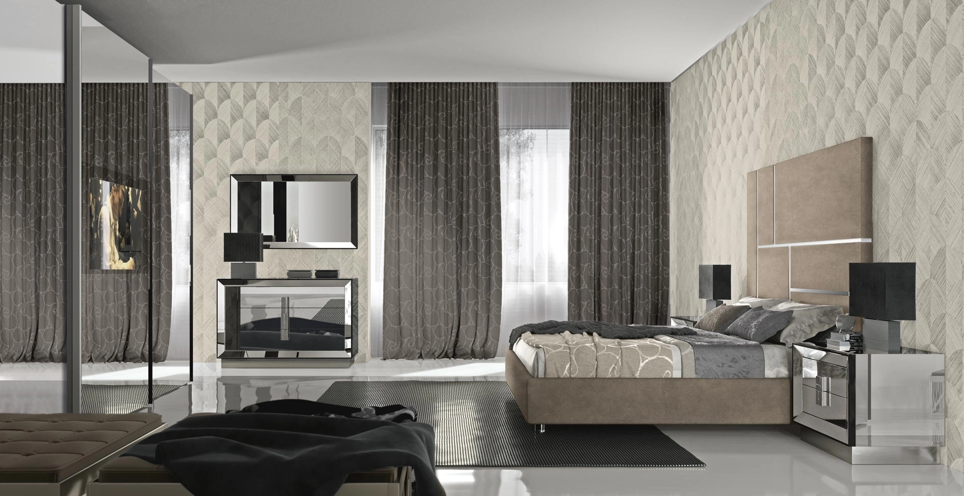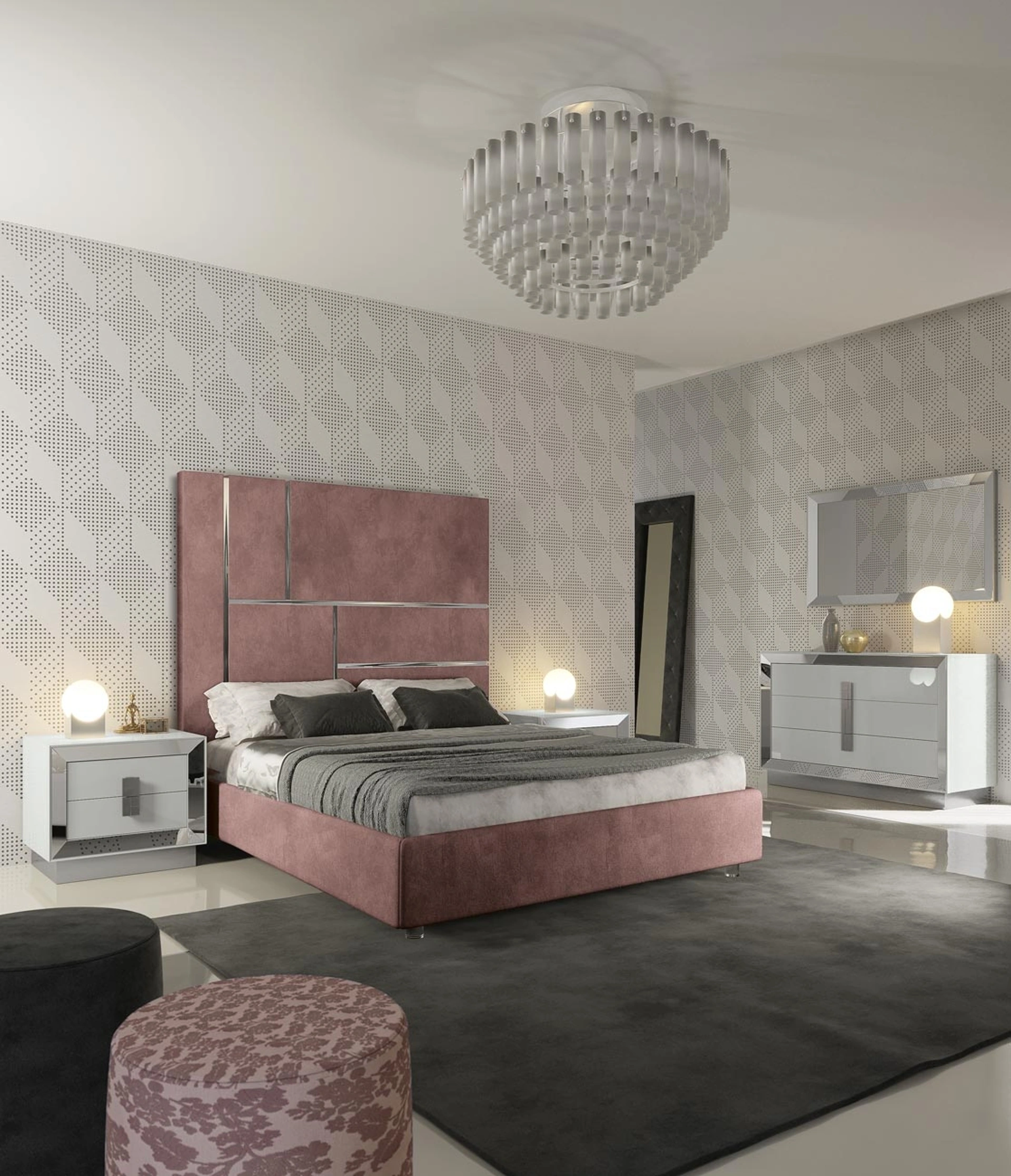 Il letto Letto Astra di Adriatica incarna una fusione perfetta tra estetica contemporanea e ingegneria avanzata. La sua imponente testiera in legno, che si eleva fino a 160 cm, e il giroletto finemente imbottito, offrono un design di grande impatto visivo. Questo modello evoca l'eleganza dell'Art Déco pur integrando linee all'avanguardia, conferendo una personalità distintiva e sofisticata alla zona notte. La vasta gamma di personalizzazioni include finiture esclusive come l'effetto pelle Arena, laccato Bianco, tessuti pregiati Nobile e Hypnos, oltre a varianti in econabuk Luna ed ecopelle Pandora, permettendo di adattare il letto a ogni specifica esigenza di stile e comfort. Questo modello è il risultato di una progettazione attenta, volta a offrire prestazioni eccezionali e un'estetica senza tempo.