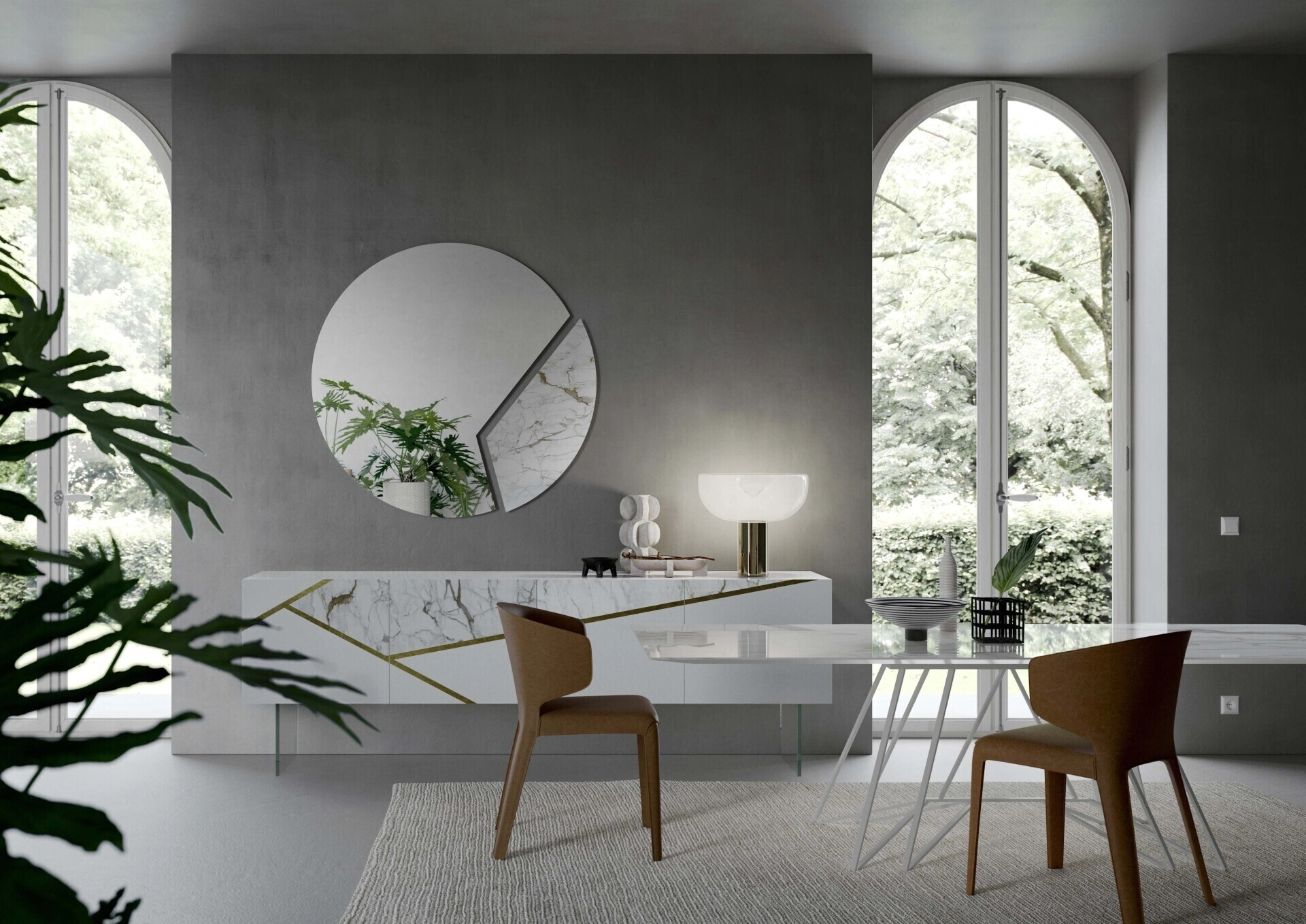 Scopri la madia Alicante Calacatta 555 di Voltan, un elemento d'arredo che combina eleganza e funzionalità. La sua struttura laccata opaco bianco, arricchita da ante con inserto in ceramica Calacatta macchia vecchia e dettagli in bronzo graffiato, poggia su raffinati piedi in vetro temperato. Offriamo un servizio di consegna e montaggio professionale, coprendo con cura aree come Angri, Nocera Inferiore e Pagani, assicurando che il tuo nuovo complemento d'arredo arrivi in perfette condizioni. Le dimensioni di 240 cm di larghezza, 81 cm di altezza e 50 cm di profondità la rendono ideale per diversi ambienti. Il nostro team è a disposizione per consulenze personalizzate e garantisce un'assistenza post-vendita completa, per un acquisto sereno e duraturo.