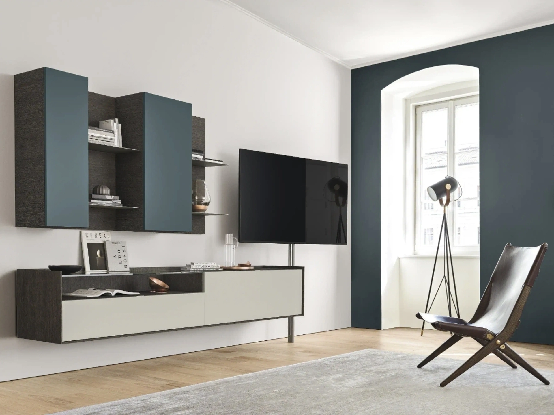 La Parete Attrezzata sospesa Cabaret Glass 02 di Sangiacomo nella fotografia, realizzata in laccato opaco, risolve le più personali problematiche abitative di spazio e stile senza rinunciare alla ricerca stilistica. Se cerchi mobili salvaspazio e realizzabili su misura per te, contattaci e scopri di più sull'Arredamento Casa delle migliori marche. Questo modello rappresenta tutta l'eccellenza che il brand assicura grazie a pluriennale professionalità e grande dedizione nel settore dell'arredo e del design. Un po’ librerie, un po’ contenitori ed espositori: le Pareti Attrezzate sono ideali per attrezzare un luogo operativo e pratico.