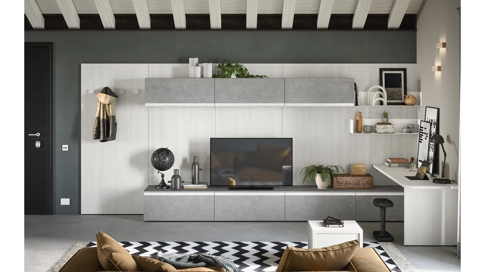 La Parete Attrezzata 06D di Cinquanta3 nella fotografia, con finitura in melaminico, risolve le più particolari problematiche abitative di spazio e stile senza rinunciare alla ricerca stilistica. Un po’ librerie, un po’ contenitori ed espositori: le Pareti Attrezzate sono ideali per sistemare un luogo operativo e pratico. Anche in un soggiorno di dimensioni contenute, questo tipo di arredo riesce a organizzare al meglio gli spazi usufruendo al meglio di ogni angolo e assicurando massima componibilità tipica delle soluzioni moderne. Se cerchi mobili salvaspazio e realizzabili su misura, contattaci e scopri di più sull'Arredamento Casa dei migliori brand. Questa soluzione rappresenta tutta l'eccellenza che il marchio assicura grazie a pluriennale professionalità e grande dedizione nel settore dell'arredo e del design.