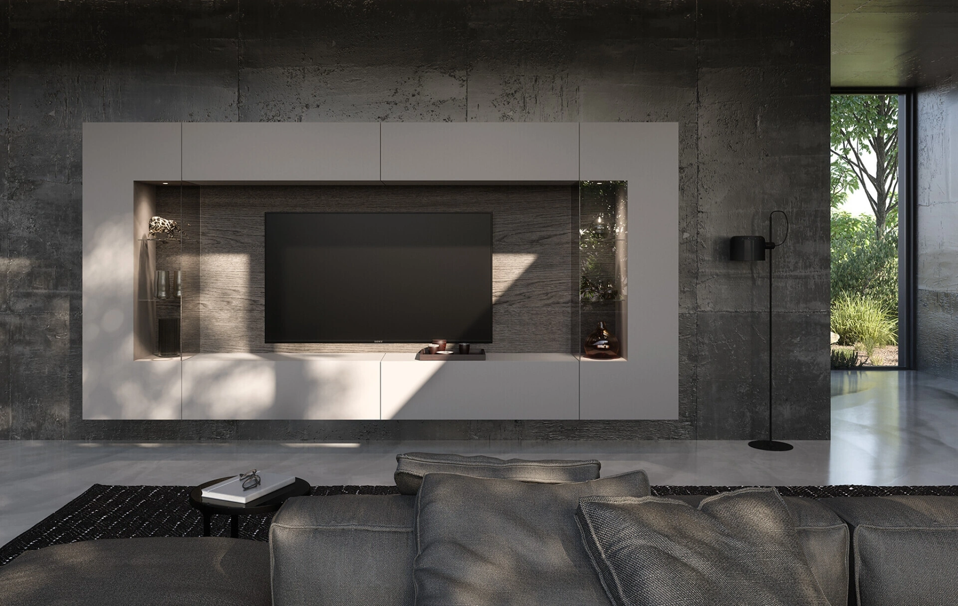 Dato che il soggiorno deve essere uno spazio funzionale e bello da vedere, sono indispensabili alcuni mobili belli e pratici come le Pareti Attrezzate. Lasciati stuzzicare da una ricca gamma di mobili per la zona giorno e troverai la parete attrezzata che fa per te. La Parete Attrezzata Soggiorno con schienale dietro vetrine di Voltan nella fotografia è una tra le più belle soluzioni d’arredo in commercio: grandi doti di componibilità e le differenti opportunità di progettazione la rendono bella e funzionale. I mobili soggiorno in laccato opaco dalle linee moderne come il modello nella fotografia sono veramente versatili e capaci di arredare la zona giorno sfruttando bene ogni angolo.