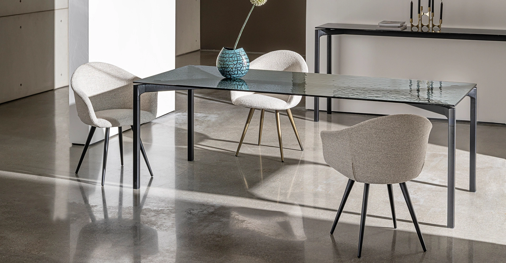 Il tavolo Bone Table di Sovet incarna un'estetica raffinata e una funzionalità impeccabile. Con una struttura attentamente progettata per enfatizzare la leggerezza e la coerenza visiva, questo complemento d'arredo si distingue per la sua silhouette pulita e l'equilibrio delle proporzioni. La sua base in metallo goffrato o brunito supporta un piano sottile, disponibile in svariate finiture di vetro, tra cui opzioni extrachiaro, fumé, bronzato, laccato in diverse tonalità (dal bianco latte al nero, passando per moka e champagne), nonché varianti satinate e Net Glass. Progettato per integrarsi con discrezione, offre soluzioni sia rettangolari che quadrate. Per una comprensione approfondita delle specifiche tecniche e delle opzioni di personalizzazione, è consigliabile consultare la documentazione di prodotto o i nostri specialisti.