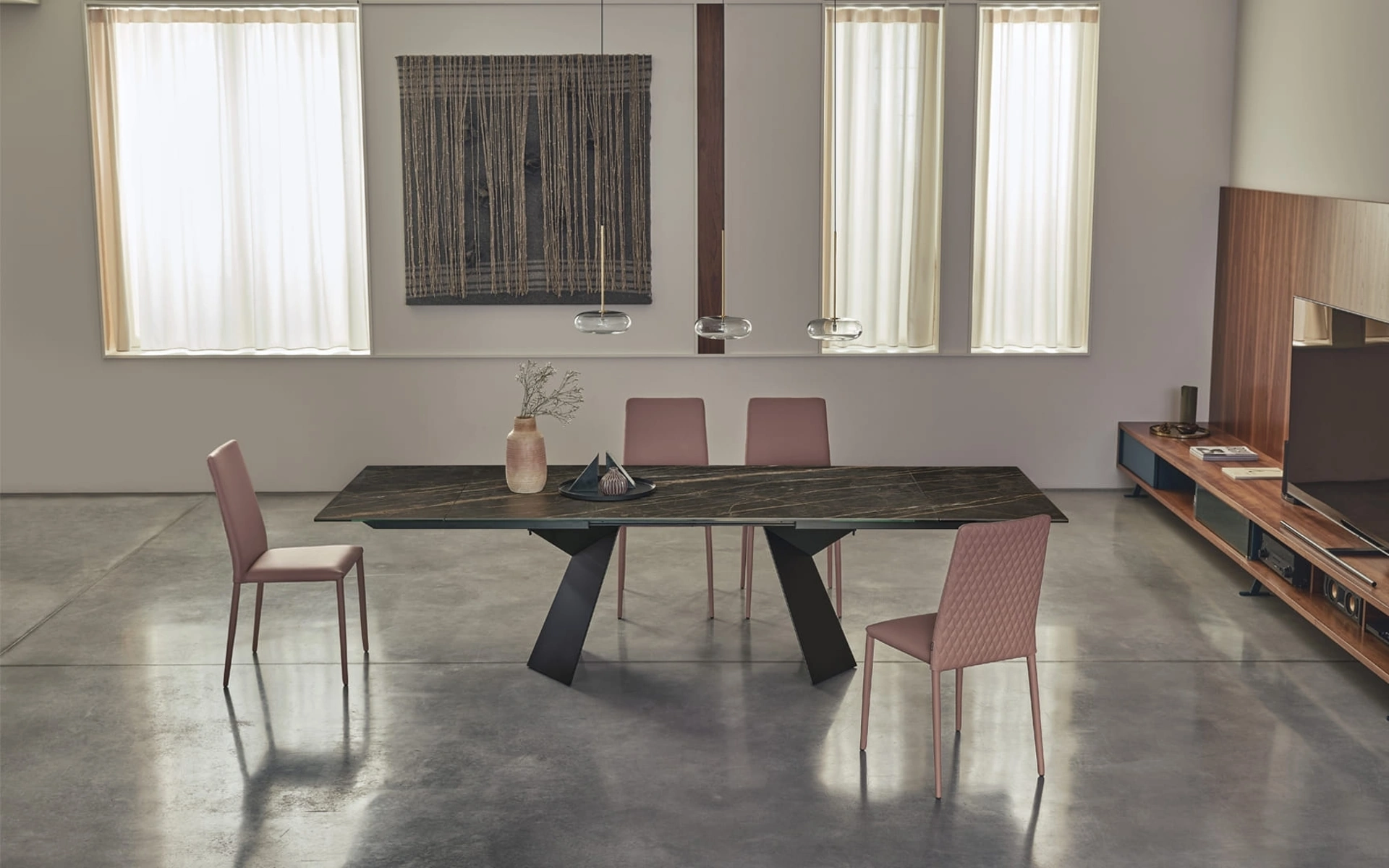 Ideali per dare vita a degli accostamenti unici con sedute e complementi moderni, i Tavoli allungabili del brand sono soluzioni tra le più esclusive in commercio, ideali per il soggiorno e la cucina. Il noto e conosciuto marchio Bontempi, specialista nella realizzazione di arredi in gres, ha scelto per la sua serie una vasta gamma di finiture, linee e tonalità. Un modello come quello nell'immagine, in abbinamento alle giuste sedute, saprà valorizzare il mood delle stanze di casa dedicate in assoluto alla socializzazione. Se desideri un tavolo da pranzo di alto contenuto estetico, contattaci e ricevi info e preventivi sul modello visibile in foto.