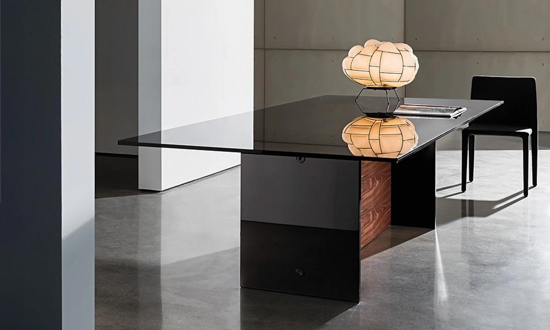 | Materiale: | Vetro extrachiaro trasparente, Vetro stratificato fumé, Vetro stratificato bronzo, Legno (Noce Canaletto, Rovere naturale, Rovere grigio laccato, Rovere tinto wengé), Vetro stratificato laccato nero |