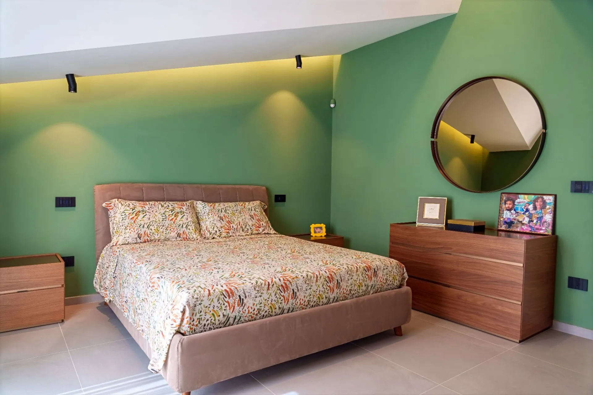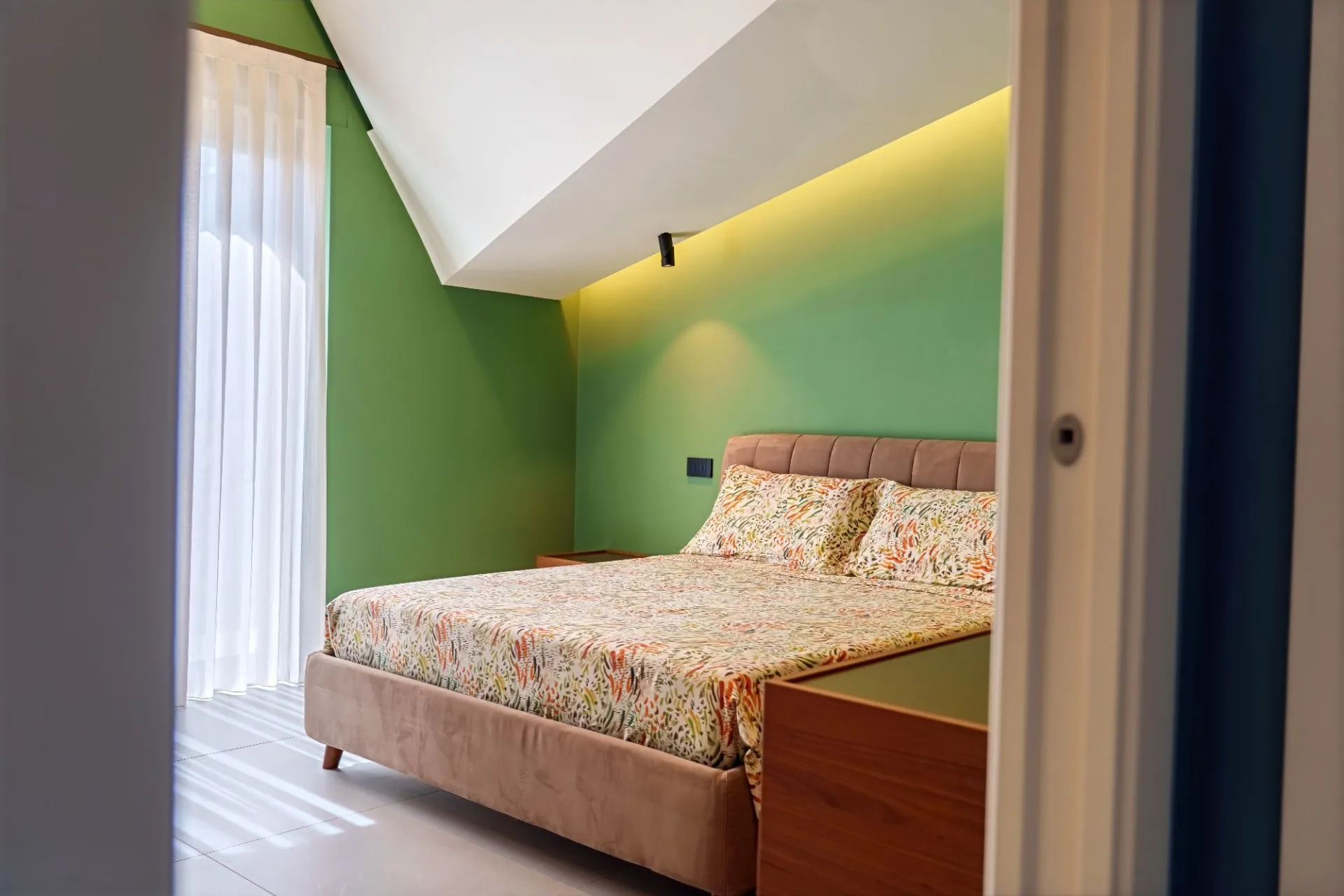 L’arredamento presenta uno stile contemporaneo ed elegante, caratterizzato da linee essenziali, finiture ricercate e un equilibrio cromatico ben calibrato.
