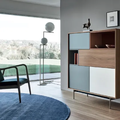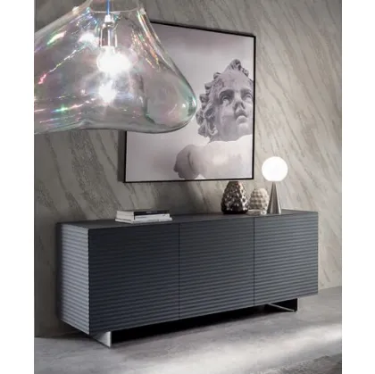 LA madia Onda trova ispirazione nel mondo della geometria, da cui mutua il concetto di linea, che si arricchisce della tridimensionalità e di un interessante gioco di chiaroscuri dati dalle incisioni verticali sulle ante e sui fianchi. Il risultato è un mobile dalle forme essenziali ma dal grande impatto.