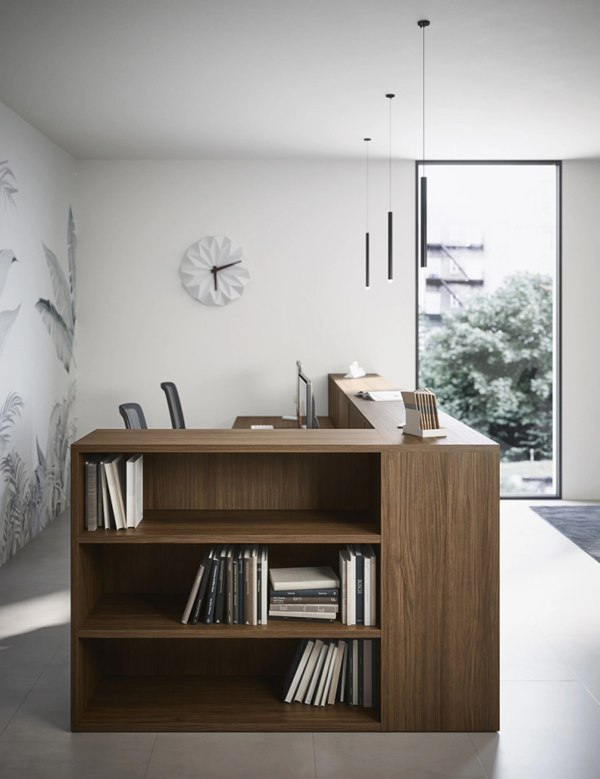 Bancone Reception 14B di Cinquanta3: su misura per completare gliambienti di lavoro assicurando l'agio di chi ci lavora, con un certo stile. Oggigiorno l’Arredo Ufficio deve agevolare le esigenze di praticità e comfort per chi lavora, quelle di accoglienza e serietà innanzitutto per i clienti. Materiali durevoli, un certo stile e linee ben studiate connotano la ricca serie di arredi per gliambienti lavorativi del marchio Cinquanta3. Il rinomato marchio si muove sempre al passo con le necessità di ciascuno, infatti offre a catalogo ogni sorta di Arredo Ufficio in melaminico.